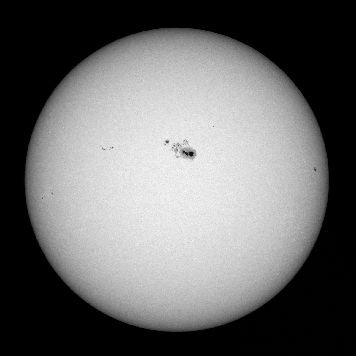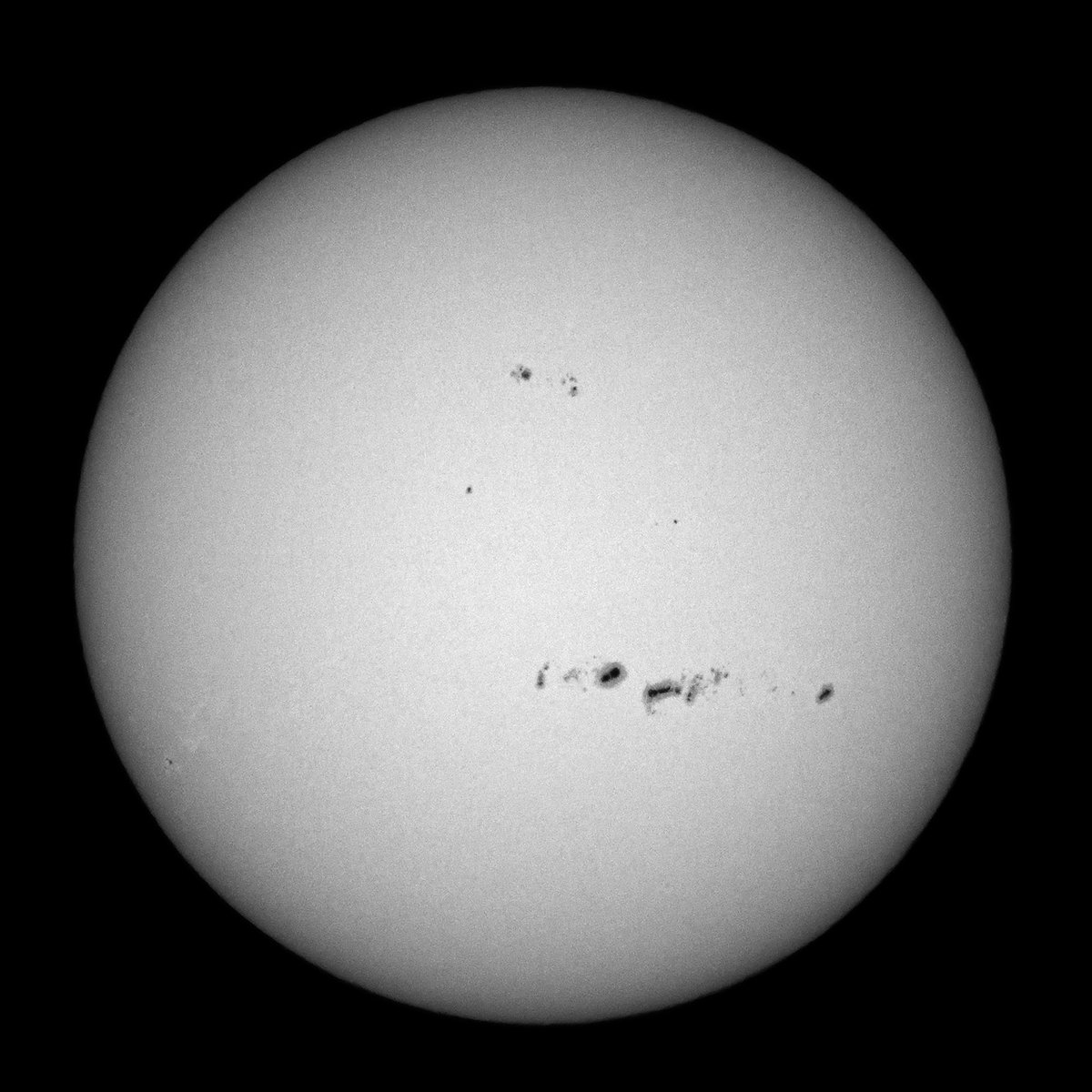 久しぶりに太陽面の撮影です。南半球正面に近いところに、大きな黒点群(4296、4294、4298群)が見えています。