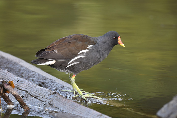 飛来したカルガモが着水するところ。シャッタータイミング的には偶然の産物。