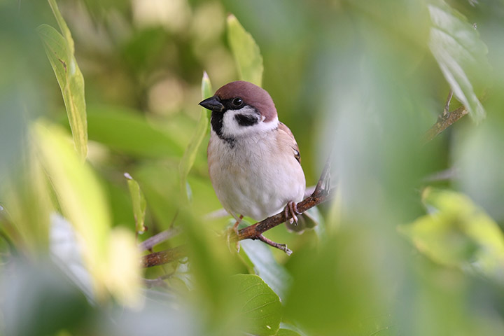 茂みの中にスズメ。こちらの存在に気づいているのか、いないのか。