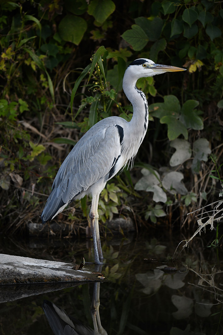 川辺に佇むアオサギ。驚かせないよう、慎重に近づいて撮影。