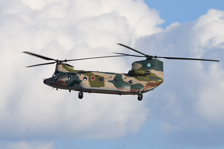 空自のCH-47Jチヌーク輸送ヘリコプター。他にも陸自のヘリとか色々。