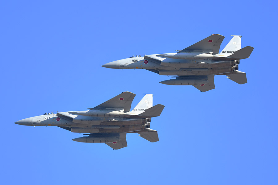 小松基地からやってきたのは、第303飛行隊所属のF-15戦闘機。単座のJと複座のDJと1機ずつ。
