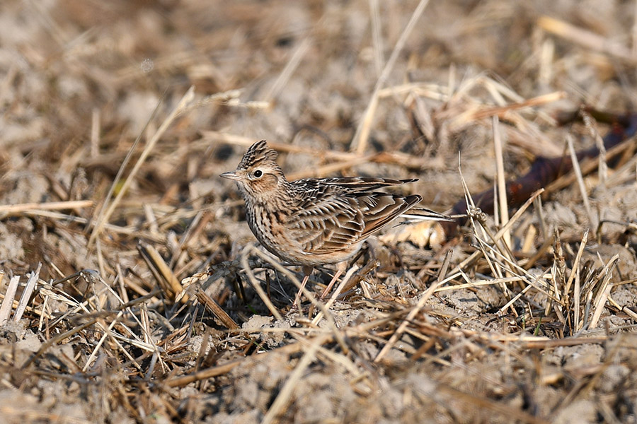 畑にヒバリ。保護色とはよく言ったものだなぁ。