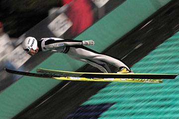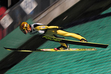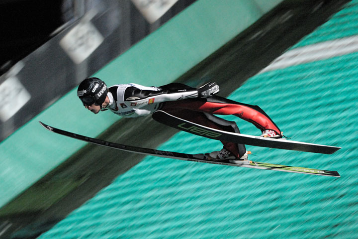 ![]() 4位の葛西紀明(土屋ホーム)。 2試合6ラウンド、全てのジャンプで失敗無し。 253.3pt(127.0m/123.0m) |