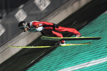 ![]() 5位の湯本史寿(東京美装)。 2本目の129.0mのジャンプは見事でした。 250.9pt(124.5m/129.0m) |