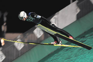 ![]() 17位の渡瀬雄太(雪印乳業)。 スムーズな印象が増した飛躍。あとは大きな一発を。 233.6pt(123.5m/116.5m) |
