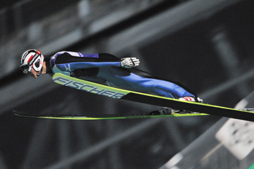 ![]() 17位の湯本史寿(東京美装)。 K点は越えるんですが、伸びがないジャンプ。 226.9pt(123.0m/120.5m) |