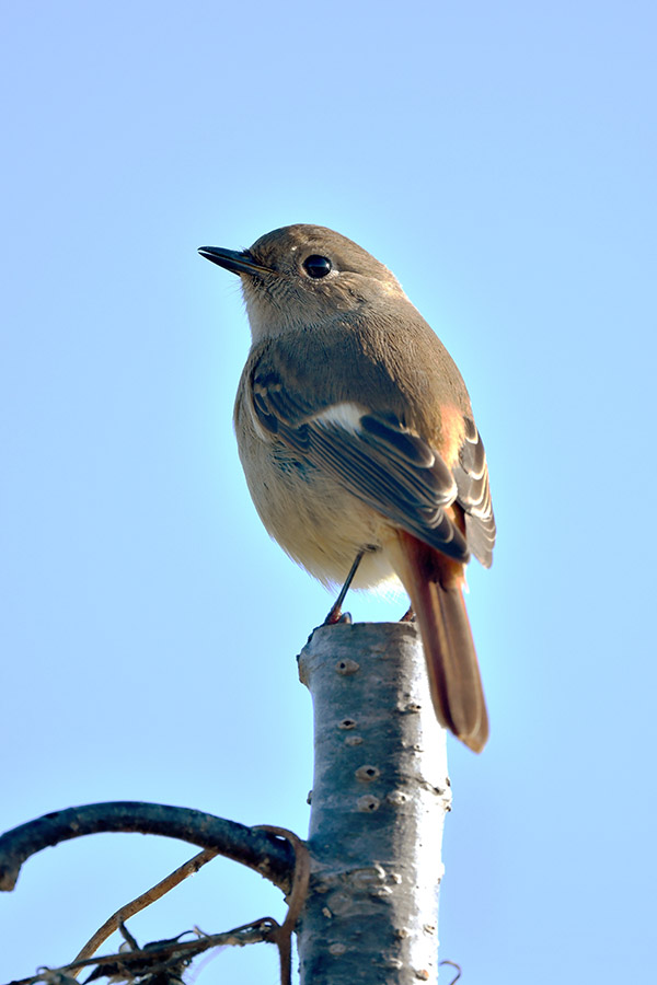 ジョウビタキ雌。見返り美人。距離5m弱に立っても全く逃げなかった、肝の据わった子です。