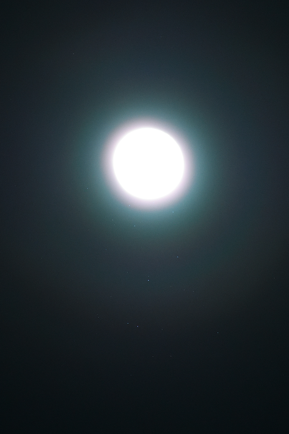 視直径にして、最も小さく見える時よりも1割以上大きく見えているはず。カメラのファインダー越しにも、いつもより大きく見える満月でございました。