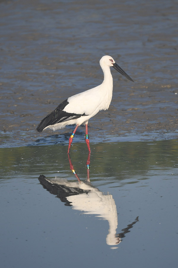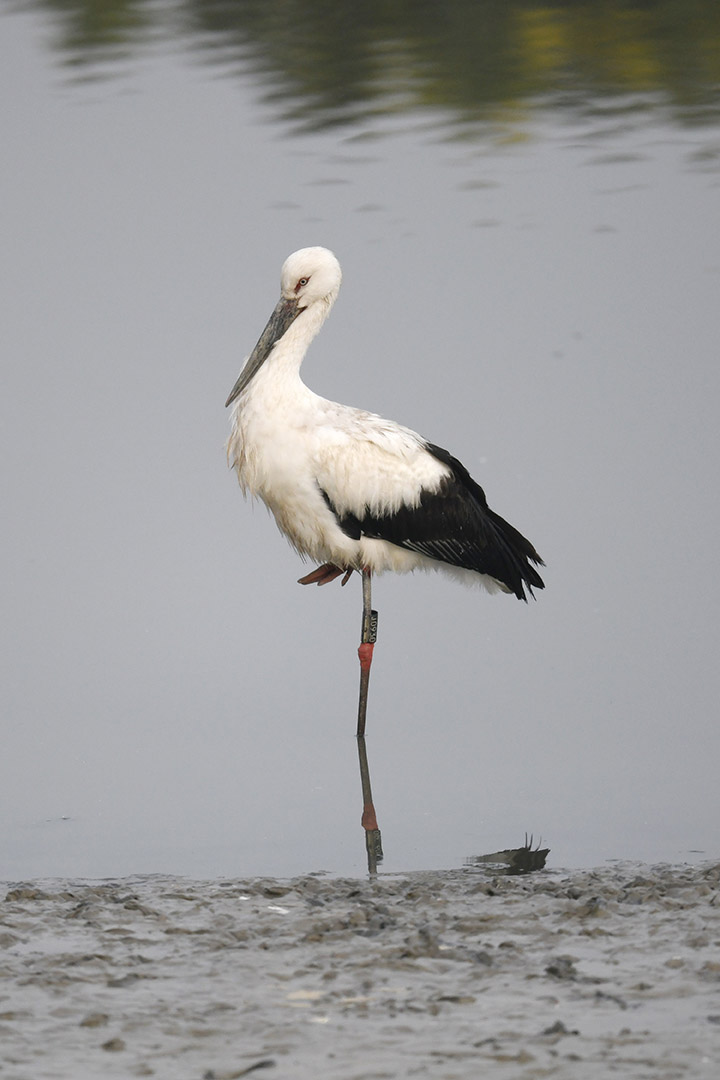 片足立ちで休憩中の「J0930」(性別不明)。微動だにしません。
