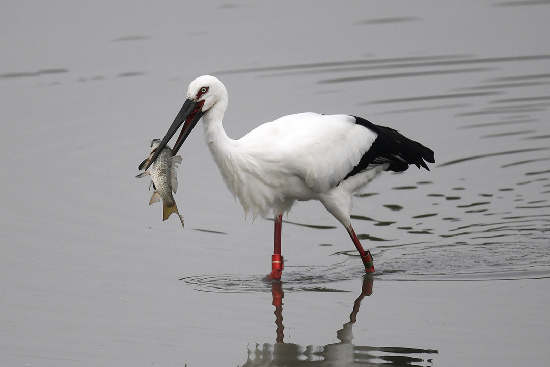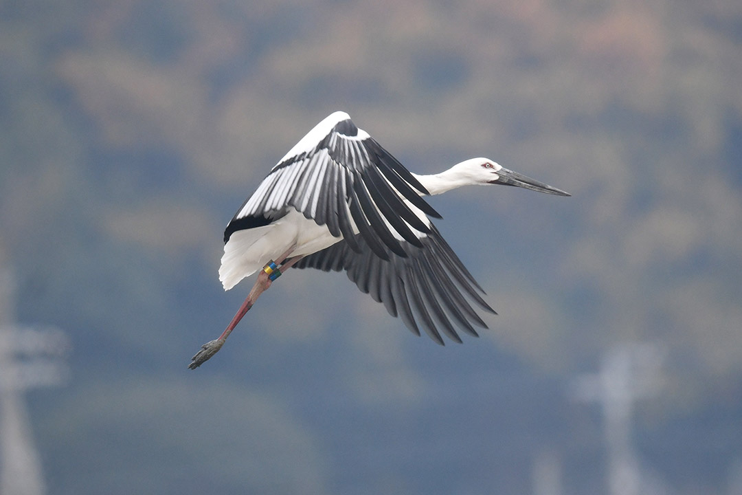 「J0803」(雌)が飛ぶ。今日は溜池の中での移動が多かったです。