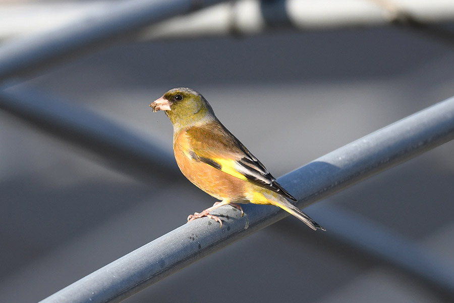 カワラヒワ。初列風切の黄色が鮮やかでいいですね。