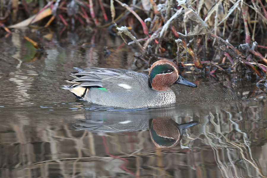コガモの雄。私の存在には気づいている模様です。