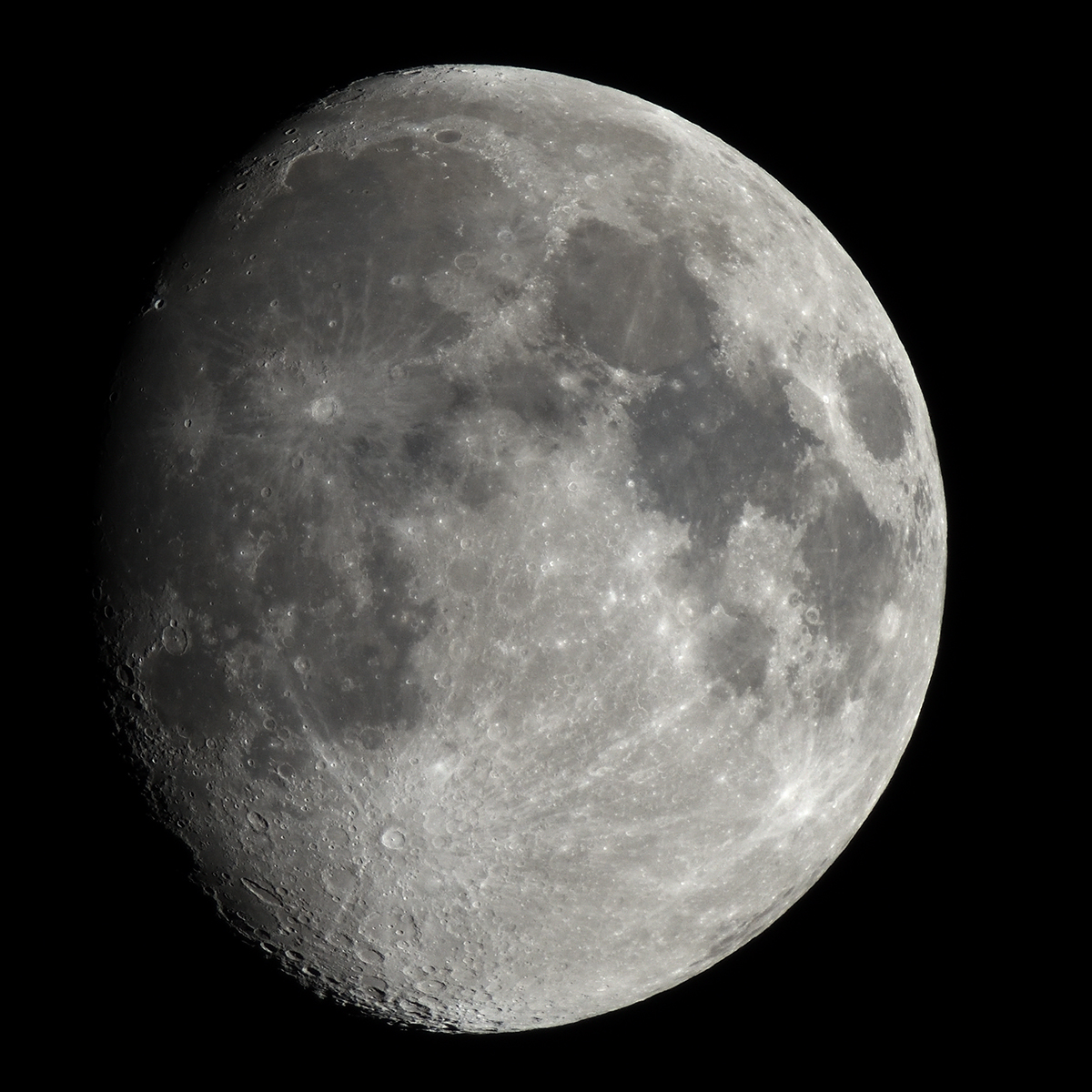 昨夜と土曜に風が強く、それでも空の透明度が高いためコントラストの強い、とてもクリアーな見え方の月です。