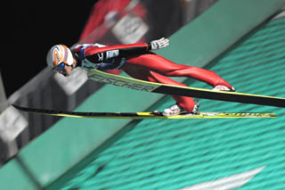 ![]() 17位の渡瀬雄太(雪印乳業)。 スムーズな印象が増した飛躍。あとは大きな一発を。 233.6pt(123.5m/116.5m) |