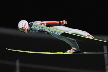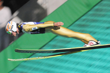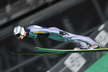 ![]() 3位の竹内択(北野建設)。 こちらも連日の3位。落ち着いたジャンプが光ります。 255.7pt(127.5m/128.0m) |