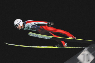 ![]() 17位の湯本史寿(東京美装)。 K点は越えるんですが、伸びがないジャンプ。 226.9pt(123.0m/120.5m) |